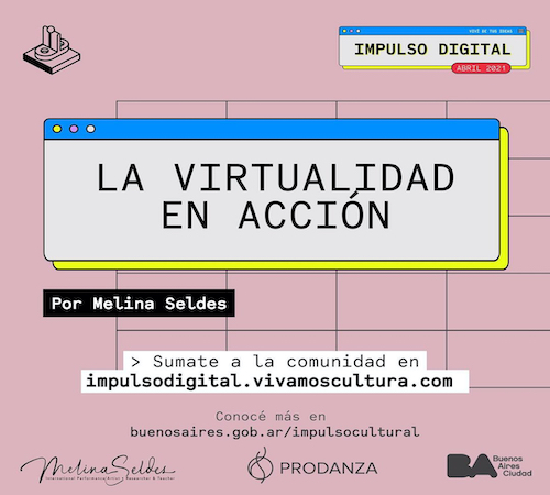 #ImpulsoDigital MÓDULOS #DANZA “La virtualidad en ACCIÓN” por @melinaseldes El programa de profesionalización para hacedores culturales te acerca nuevos módulos específicos del mundo de la danza. Este módulo brinda herramientas para el desarrollo y la producción de actividades artísticas, procesos creativos, metodologías de trabajo y organización de eventos culturales desde y para plataformas virtuales. ¿Cuáles son
